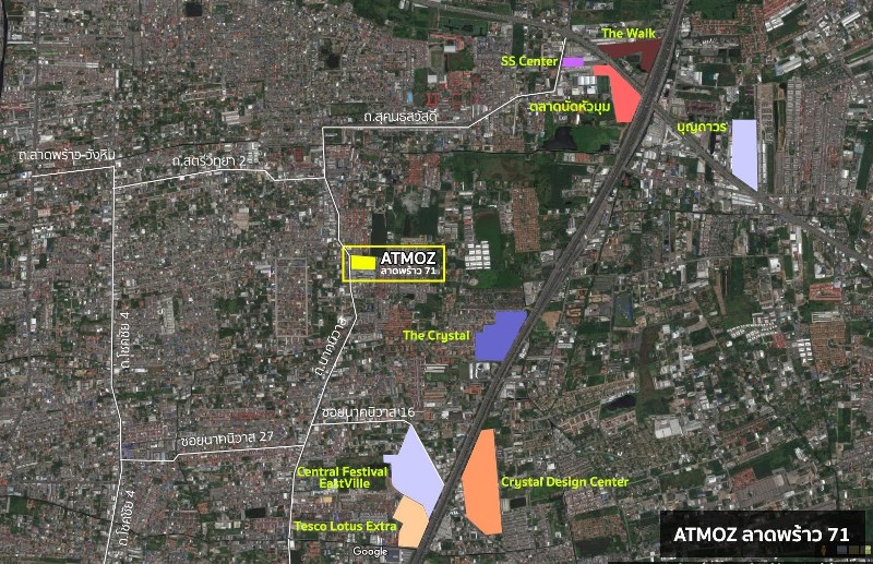 ATMOZ ลาดพร้าว 71 อยู่ตรงข้ามซอยนาคนิวาส 51-53 ติดกับคอนโดฯ My Story (สร้างเสร็จ 2558) รอบด้านเป็นหมู่บ้าน ทาวน์เฮ้าส์ 2-3 ชั้น มีหอพักใกล้เคียงแต่ไม่บัง
