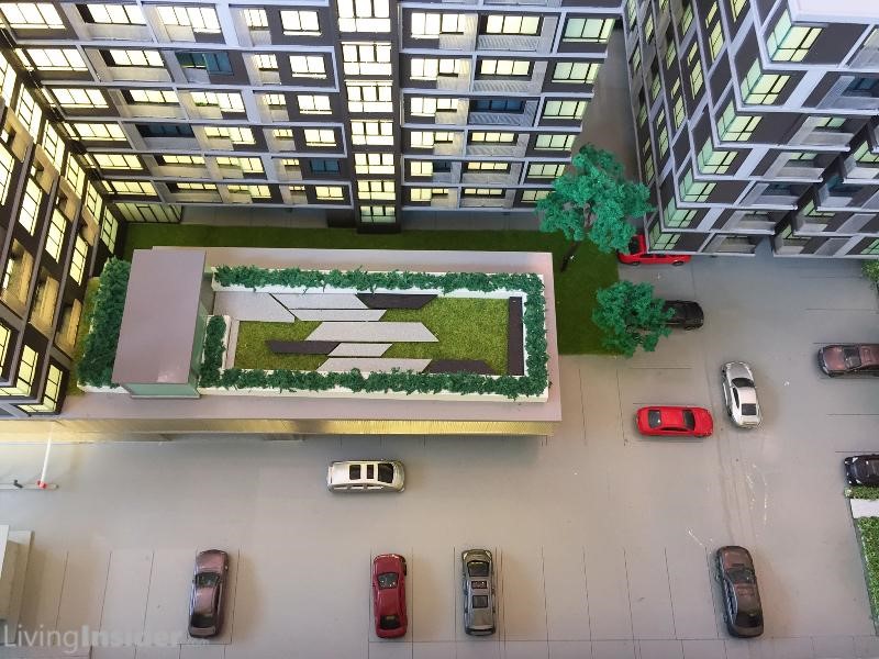มาดูโมเดลกันก่อน จะเห็นว่าส่วนกลางของ ATMOZ ลาดพร้าว 71 มาครบตั้งแต่หัวจรดท้าย เริ่มจากสำนักงานขายปัจจุบัน อนาคตจะปรับเปลี่ยนเป็น Duplex Lobby Lounge พร้อมห้อง Karaoke Theater/Meetinghub/Gameroom (โต๊ะ Pool+Air Hockey) และสวนหย่อมบนดาดฟ้า