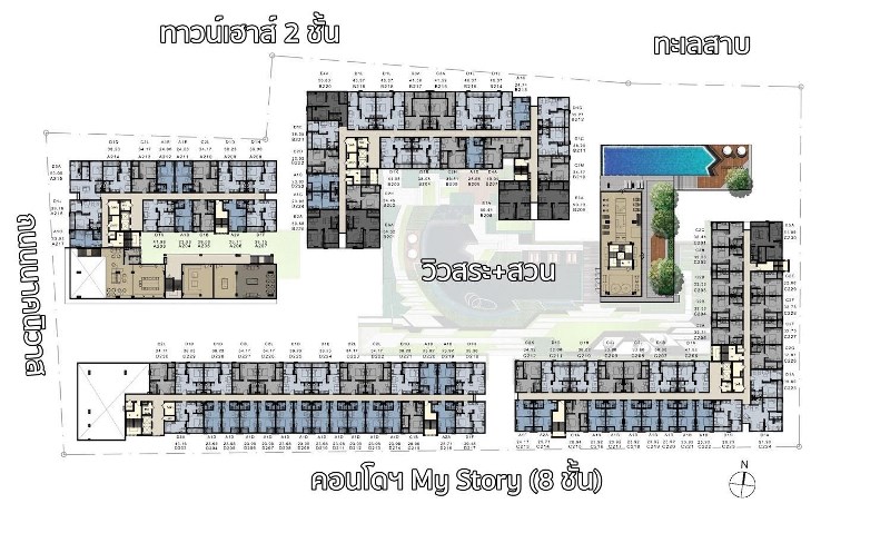 ชอบวิวสระ+สวน อาคาร B, C, D ด้านในก็น่าสนใจ เป็นยูนิต 1-Bedroom Exclusive,1-Bedroom Plus ห้องใหญ่ ส่วนทิศใต้จะหันเจอเพื่อนบ้าน (My Story) เต็มๆ ฝั่งนี้ราคาค่อนข้างถูก และเป็นยูนิต 1-Bedroom เล็กทั้งหมด
