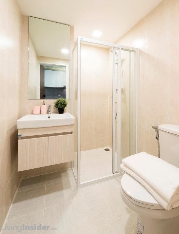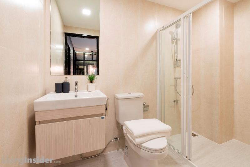 สำหรับห้องน้ำเข้าจากส่วนนั่งเล่น อุปกรณ์ต่างๆ ให้ครบเหมือนยูนิตก่อนหน้า ต่างกันเฉพาะพื้นที่ห้องน้ำของ 1-Bedroom Exclusive กว้างกว่าหน่อยนึง