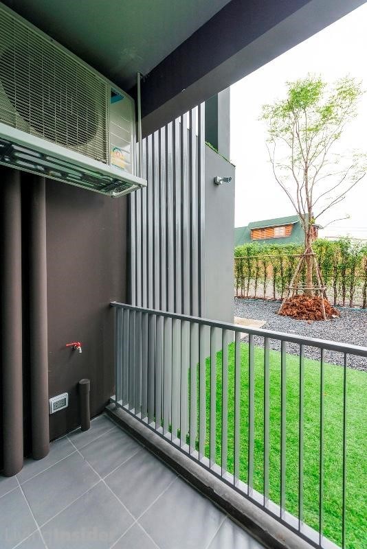 พื้นที่ระเบียง โครงการวางท่อ/ก๊อกน้ำ พร้อมเต้าเสียบปลั๊กไว้สำหรับวางเครื่องซักผ้าให้เรียบร้อย เหลือที่ไว้ตากผ้านิดหน่อย