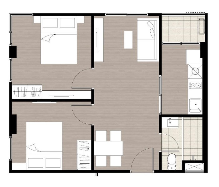 ยูนิต 2-Bedroom (2-Bed + 1 Bath) มีเพียง 42 ยูนิตทั้งโครงการครับ อยู่อาคาร B เกือบทั้งหมด (ห้องมุม) แบ่งสัดส่วนลงตัวทั้ง ห้องนั่งเล่น+ห้องนอน+ครัวแบบปิด เหมาะกับอาศัย 2-4 คน