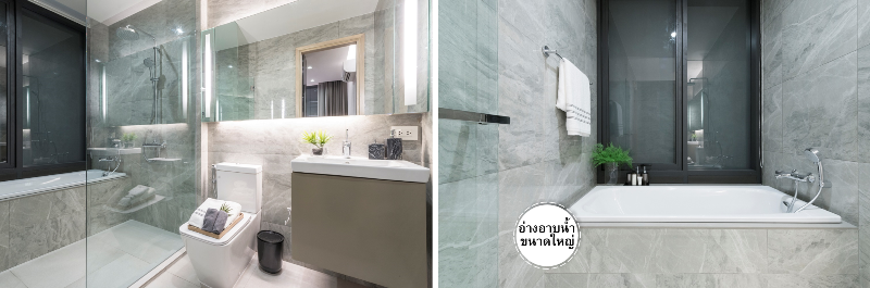 ห้องน้ำเล็กก็ว่าจัดเต็มแล้วนะ มาเจอห้องน้ำใหญ่นี่รู้สึกว่าคุ้มค่ากับราคามากๆ เพราะนอกจากจะใช้สุขภัณฑ์แบรนด์นอกแล้ว ยังเพิ่มฟังก์ชั่นอ่างอาบน้ำมาให้พร้อมกับฝักบัวขนาดใหญ่อีกด้วย On Top แล้ว On Top อีก... ดูไปดูมาก็เหมือนนอนโรงแรมหรูๆ เข้าไปทุกที
