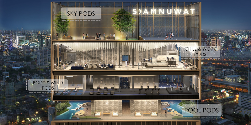 มาตอกย้ำพื้นที่ส่วนกลางกันอีกสักรอบกับโซน Lifestyle Pods ชั้น 38-41 ได้แก่