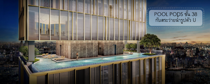 ชั้น 38 Pool Pods สระว่ายน้ำลอยฟ้ารูปตัวยูขนาดใหญ่สามารถมองทัศนียภาพรอบๆ คอนโดได้แบบ 360 องศา