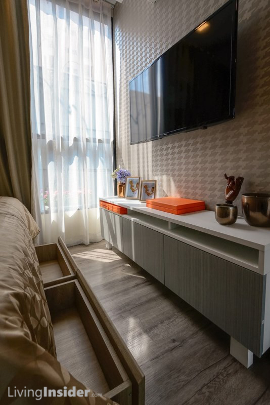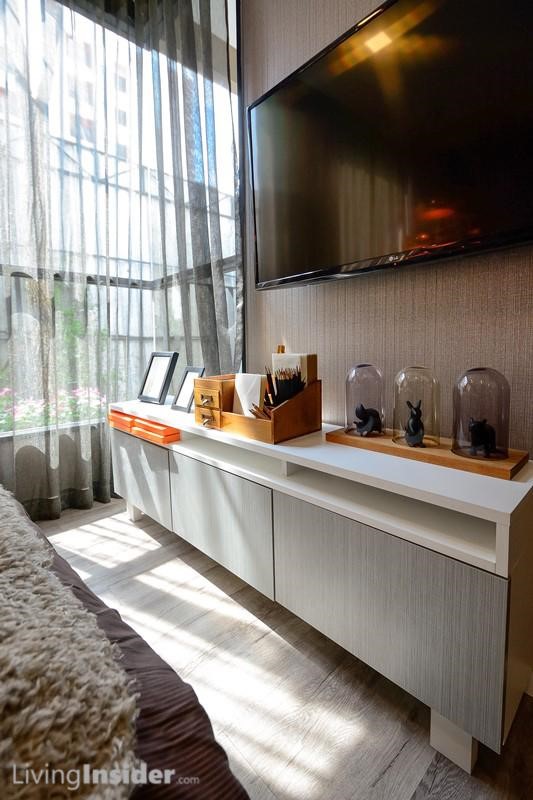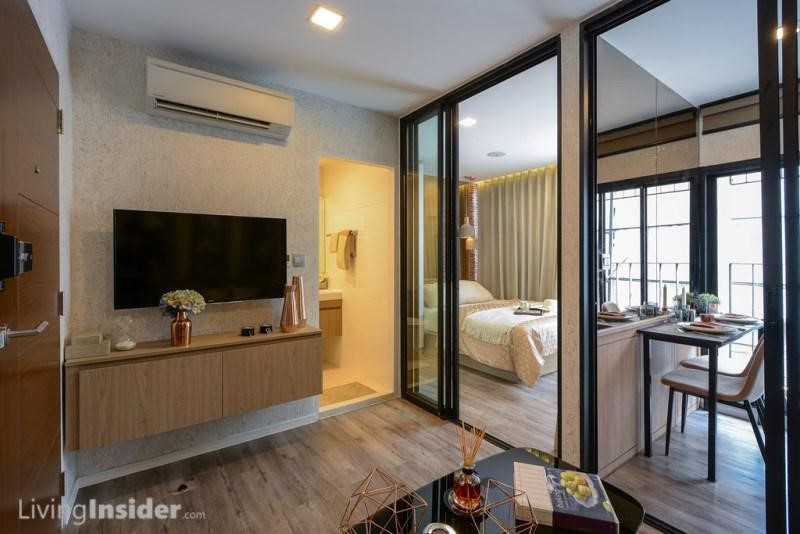 สำหรับห้องตัวอย่างมี 2 รูปแบบคือ 1-Bedroom Exclusive (24.98 ตรม.) และ 1-Bedroom Plus (33.35 ตรม.) เนื่องจากโครงการขายแบบ Fully-Furnished ดังนั้นเฟอร์ฯ จะได้ครบ พร้อมลากกระเป๋าเข้าอยู่ได้เลย