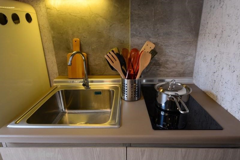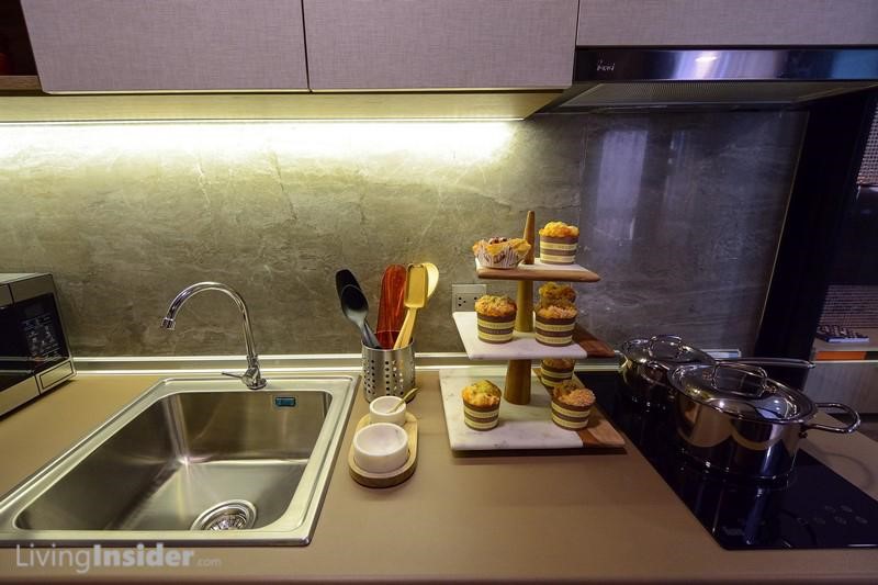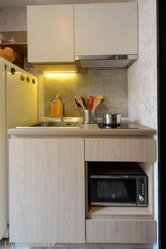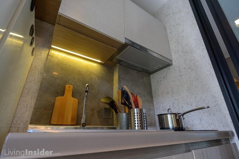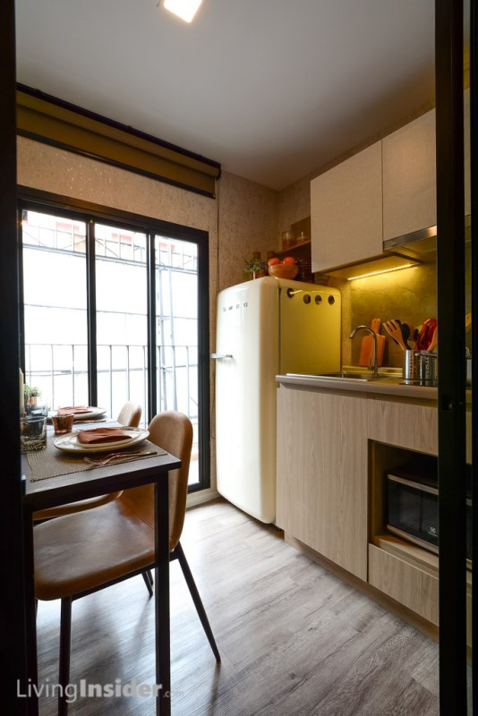 ห้องครัวกั้นด้วยประตูเลื่อน 3 ตอนกั้นแยกจากห้องนั่งเล่นได้ สามารถทำกับข้าวไม่มีปัญหาเรื่องกลิ่น