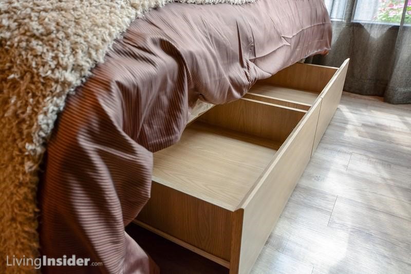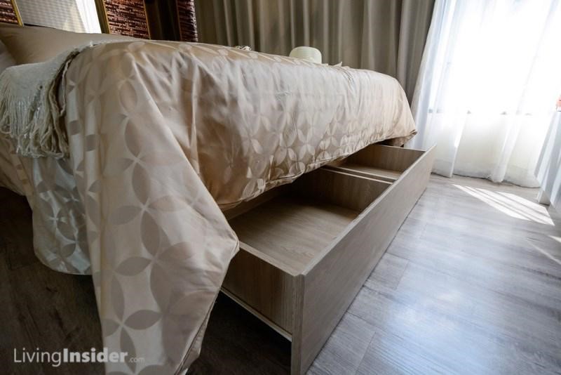 เตียงมีลิ้นชักเก็บของให้ด้วย