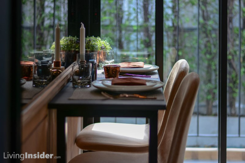 หลังโซฟามีพื้นที่วางโต๊ะทานอาหารได้เลยซึ่งอาจดัดแปลงเป็นโต๊ะทำงานก็ได้