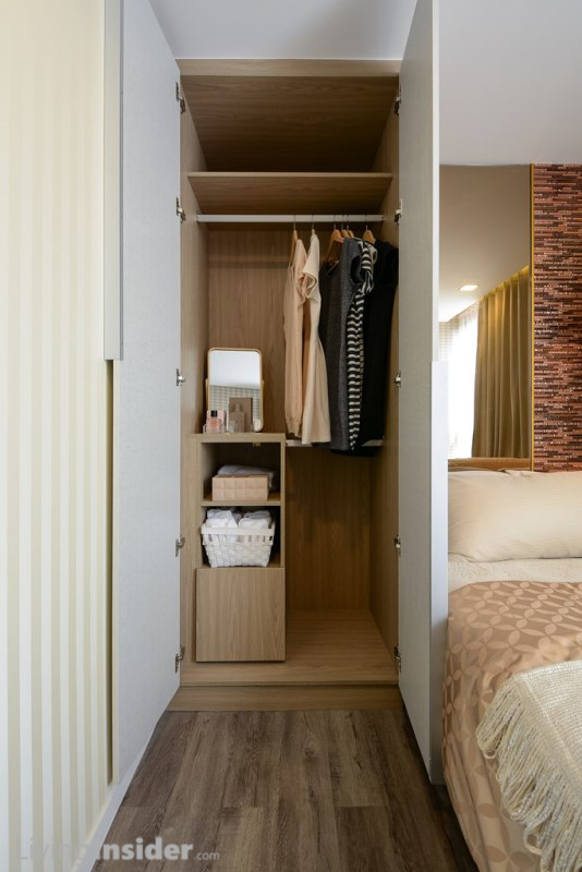 โครงการให้เฟอร์นิเจอร์มาอย่างดี ลงตัวกับขนาดห้องครับ ตู้เสื้อผ้าบิวท์อิน จัดให้แบบติดเพดานเลยทีเดียว