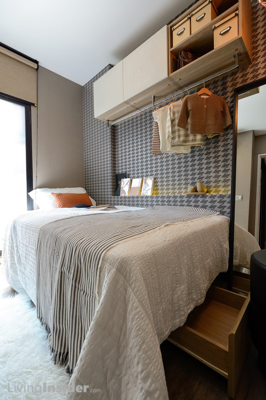 ห้องอเนกประสงค์ สามารถปรับเปลี่ยนรูปแบบใช้สอยหลากหลาย โดยห้องตัวอย่างจัดเป็นห้องนอนเล็กให้ดู สามารถวางเตียงขนาด 3.5 ฟุตพอดี