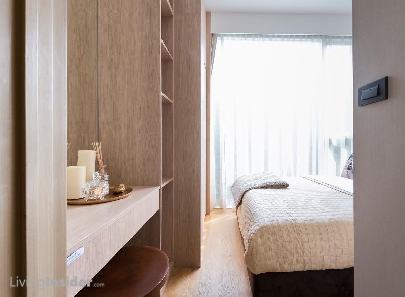 ส่วนห้องนอนรอง ลดขนาดพื้นที่ลงมาหน่อย แต่มีโต๊ะแต่งตัวเพิ่มเข้ามา