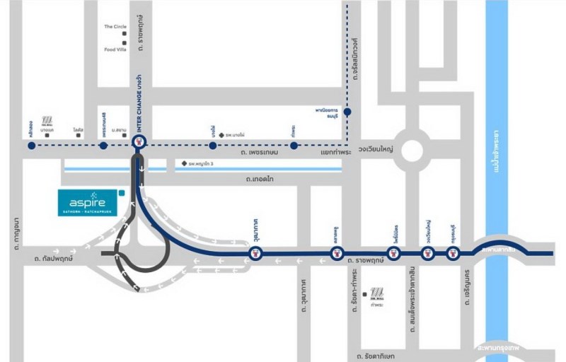เด่นที่สุดก็คือเรื่องศักยภาพด้านการเดินทาง Aspire สาทร-ราชพฤกษ์ หน้าโครงการอยู่ติดกับทางขึ้น Sky Walk ที่ต่อตรงเดินไปถึง BTS สถานีบางหว้าได้เลย โดยมีระยะทางจากตัว Sky Walk ถึง BTS ก็ประมาณ 350 เมตรเท่านั้น