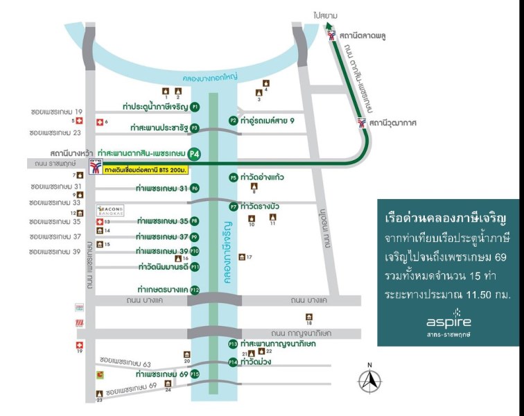 • ใช้เรือด่วนได้ทั้งทางเส้นแม่น้ำเจ้าพระยาและคลองภาษีเจริญ