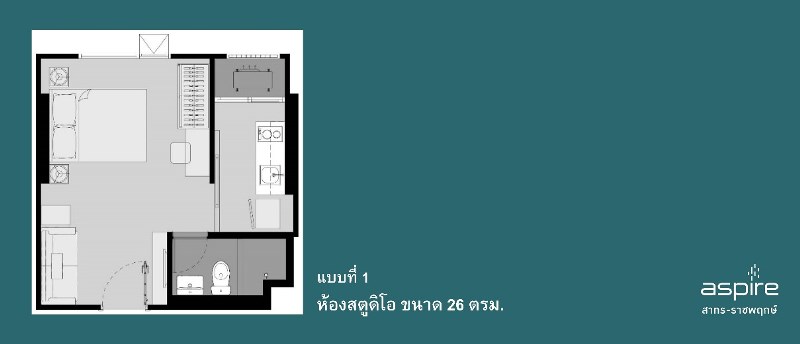 • ห้องสตูดิโอ ขนาด 26 ตรม.