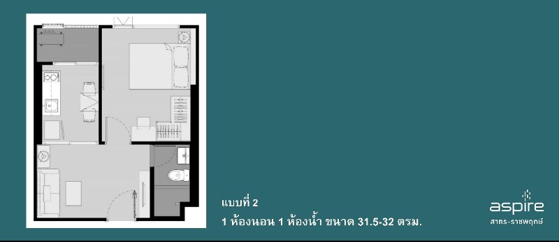 • 1 ห้องนอน 1 ห้องน้ำ ขนาด 31.5-32 ตรม.