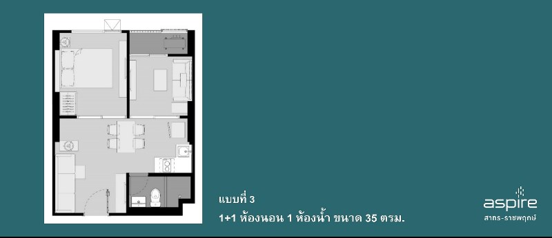 • 1+1 ห้องนอน 1 ห้องน้ำ ขนาด 35 ตรม.