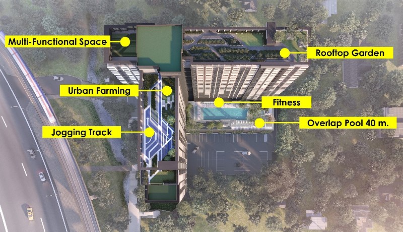 Rooftop มีพื้นที่ทั้งหมดกว่า 1,200 ตรม. เป็นพื้นที่สวนสีเขียวและมี Urban Farming อยู่ 20% ให้ลูกบ้านได้มีพื้นที่ปลูกผักสลัดและสมุนไพรต่างๆ ไว้ทานเอง โดยจะมีเจ้าหน้าที่ดูแลรดน้ำให้ทุกวัน นอกจากนี้ยังเป็นสถานที่พักผ่อนและทำกิจกรรมร่วมกัน อาทิ ที่นั่งพักผ่อนชมวิวแบบ 360 องศา มีลู่วิ่ง Jogging Track และลานกีฬาแบบกลุ่ม เช่น ฟุตซอล วอลเล่ย์บอล โยคะ แชร์บอล ฯลฯ