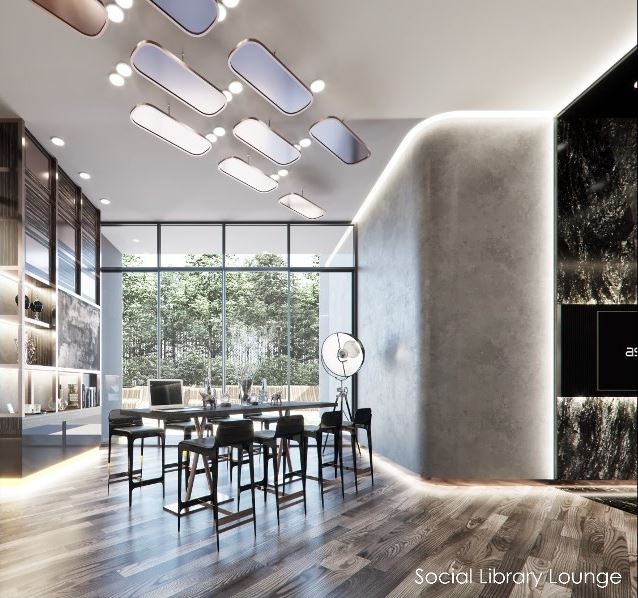 ที่ทางโครงการตั้งใจออกแบบให้เป็น Co-Working & Sharing Space ที่ผู้อาศัยสามารถนั่งทำงานหรือพูดคุยและประชุมงานได้ นั่นคือ Social Library Lounge โซนห้องสมุดและโต๊ะอ่านหนังสือแบบ Indoor ใช้นั่งคุยงานที่ไม่ต้องการความเป็นส่วนตัวมากนักหรือใช้เป็นที่นั่งทำงานในห้องแอร์สบายๆ