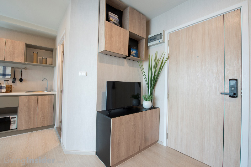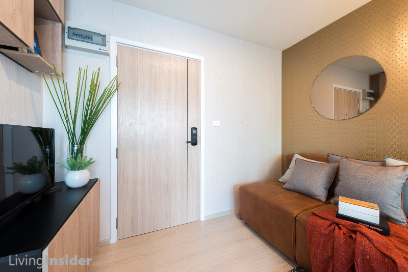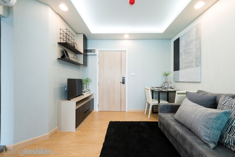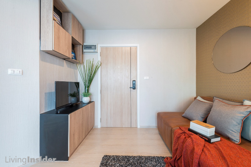 โครงการจะแถมโซฟาขนาดสองที่นั่ง และตู้วางทีวีมาให้ด้วย ระยะดูทีวีจากโซฟาประมาณ 1.50 เมตร เหมาะกับการวางทีวีขนาด 32 -40 นิ้ว ฝ้าเพดานสูง 2.40 เมตร พื้นไม้ลามิเนตสีไม้แบบหนา