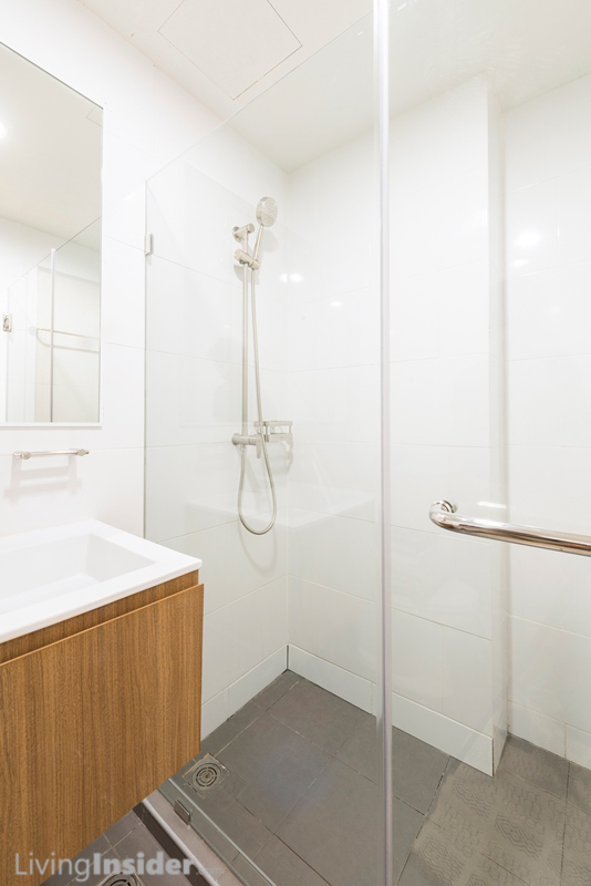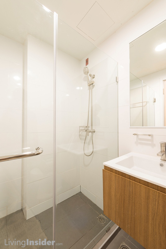 ห้องน้ำแยกส่วนเปียกและส่วนแห้ง กระจกส่องขนาดใหญ่เพื่อรองรับการแต่งตัวของสาวๆ กั้นส่วนอาบน้ำด้วยห้องกระจกบานเต็ม