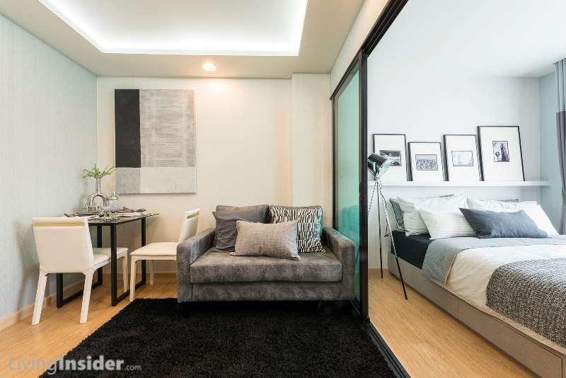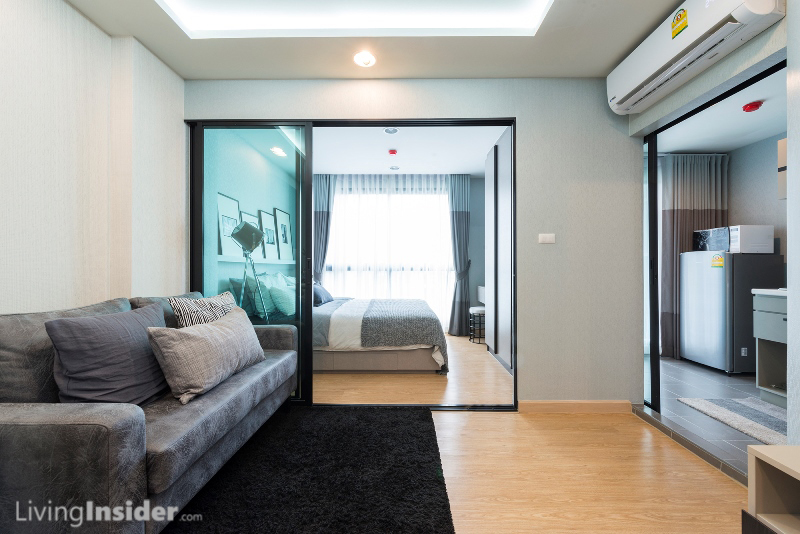 ให้เฟอร์นิเจอร์แบบ Fully Furnished เช่นกัน โดยห้องนี้จะมีการจัดวางฟังก์ชั่นคล้ายห้อง 25 ตารางเมตร ยังคง Concept ความโล่ง โปร่ง สบาย แบบ Integration-oriented ไว้ได้อย่างครบครัน แต่กว้างและมีพื้นที่เพิ่มขึ้น