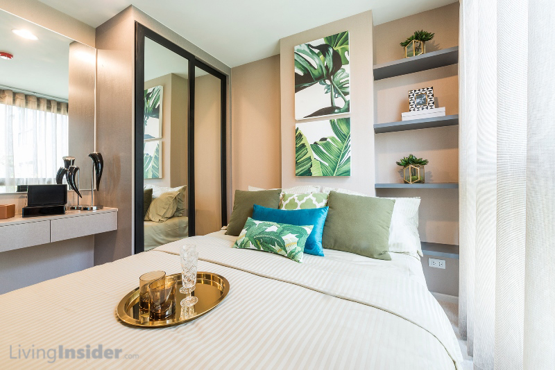 ปลายเตียง มีบิ้วท์อินตู้เสื้อผ้าและโต๊ะเครื่องแป้งให้ด้วย