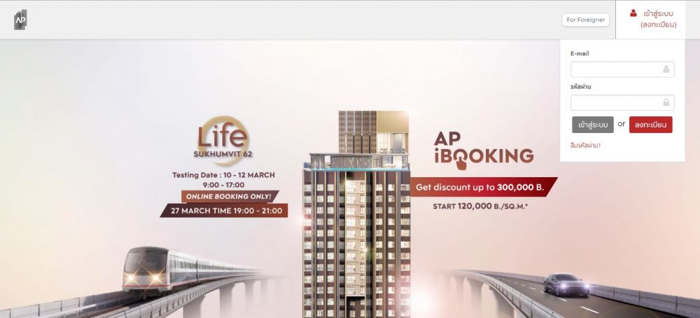 มาเถอะครับ… มาเป็นส่วนหนึ่งของการสร้างประวัติศาสตร์การทำ Online Booking 100% ครั้งแรกกับ AP Thailand ขอย้ำอีกครั้ง Life สุขุมวิท 62 จองผ่าน Online Book วันที่ 27 มีนาคม หนึ่งทุ่มตรง ลงทะเบียน หาข้อมูล เลือกห้องที่ถูกใจ และเตรียมวงเงินบัตรเครดิตกันได้ตั้งแต่วันนี้ครับ