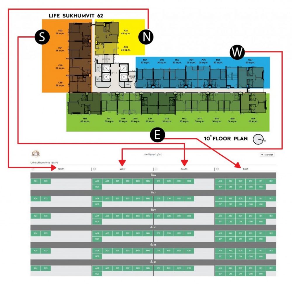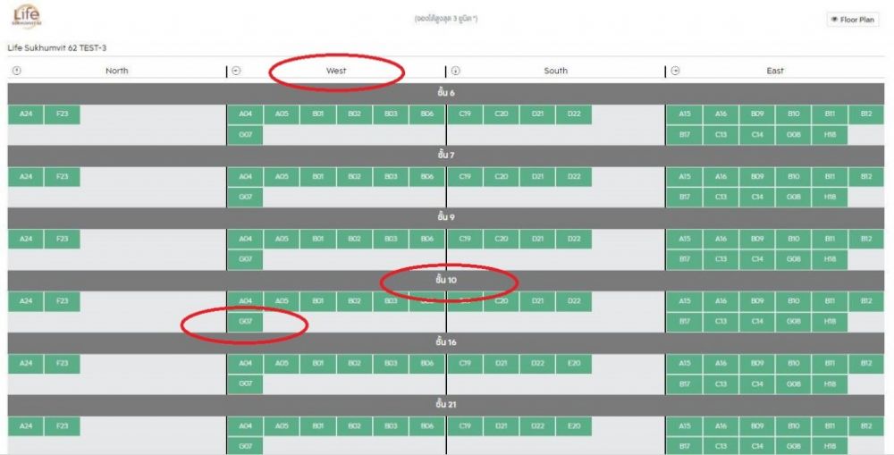 สมมติเราสนใจห้อง ชั้น 10 ตำแหน่ง G07 ด้านทิศตะวันตก ให้ดูแบบนี้ครับ