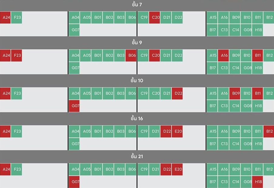 ห้องไหนเขียวคือว่างอยู่ ห้องไหนแดงคือจองแล้ว