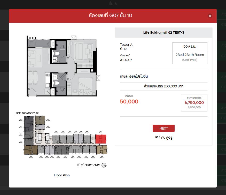 ถ้าเราคลิกห้องที่ยังว่างอยู่ จะขึ้นหน้า Pop-up บอกรายละเอียดของห้อง พร้อมราคา และโชว์ว่ากำลังมีคนสนใจดูห้องนี้อยู่กี่คน ถ้าเอาห้องนี้แล้ว ให้คลิกที่ Next เพื่อเข้าสู่ขั้นตอนชำระเงิน แล้วก็ทำต่อไปเรื่อยๆเลยครับ ระบบจะขึ้นวิธีการทุกขั้นตอนครับ ไม่งงแน่นอนครับ ง่ายๆ