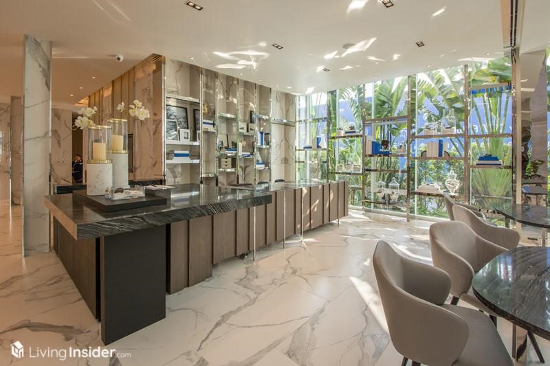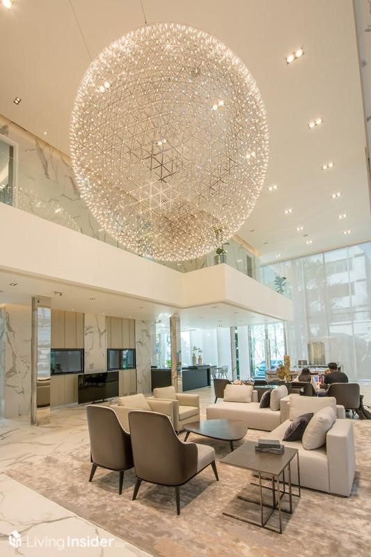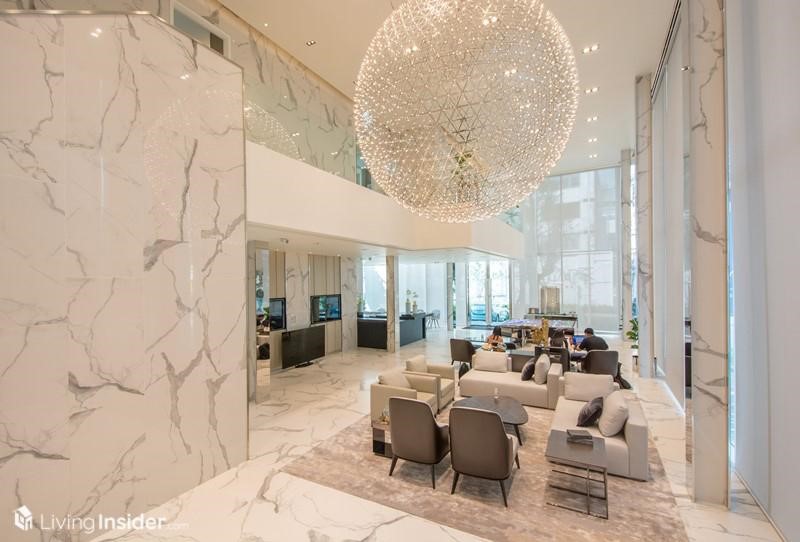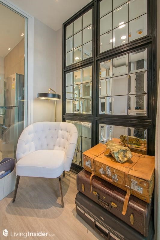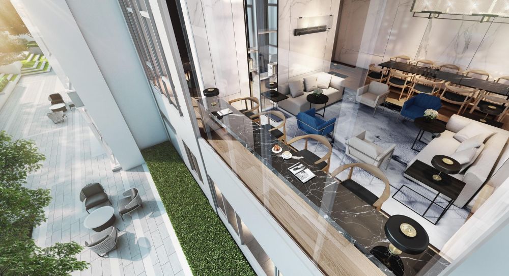 Lobby โปร่งสบายด้วยรูปแบบ Double-Volume ตกแต่งธีมคล้าย Sale Gallery เน้นวัสดุกระจก โลหะ เซรามิคลายหินเป็นหลัก รับแสงธรรมชาติจากภายนอก นอกจากที่นั่งรับแขก ยังมี Co-Working Space บนชั้นลอยอีกด้วย