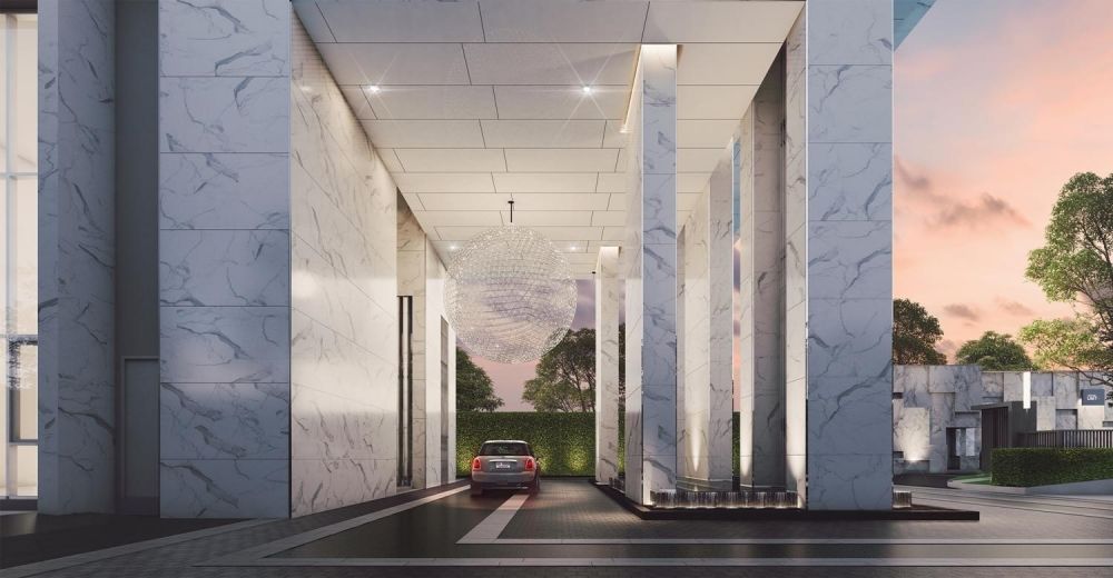 จุด Drop-Off ด้านหน้าอาคาร สามารถวนออกโครงการ หรือขึ้นอาคารจอดรถด้านหลังได้ พื้นที่จอดรถคิดเป็น 41% ของจำนวนยูนิต (ไม่รวมจอดซ้อนคัน) เพียงพอกับลูกบ้านครับ บางท่านอาจใช้รถส่วนตัว แต่ส่วนใหญ่เดินทางด้วยรถไฟฟ้าก็สะดวกดีครับ