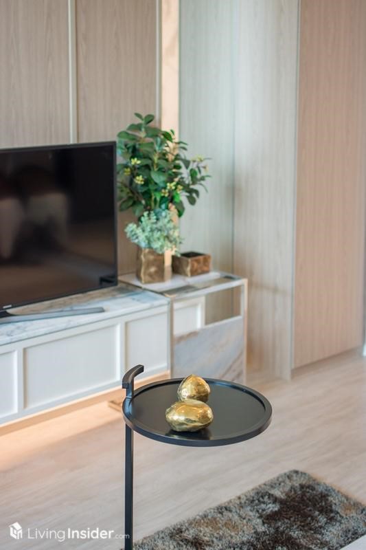 เปิดเข้ามาพบกับส่วนนั่งเล่น จัดชั้นวางทีวีขนาดใหญ่ได้ (เหมาะกับทีวี 50-55 นิ้ว), โซฟาขนาด 3 ที่นั่ง โต๊ะกลาง เพิ่มชั้นวางของตามความต้องการครับ นอกจากตู้เก็บรองเท้าที่โครงการบิวท์อินให้