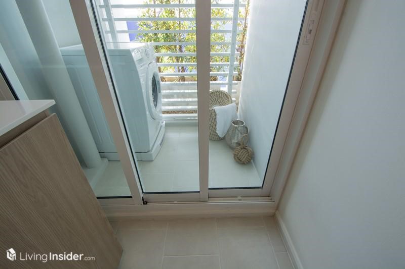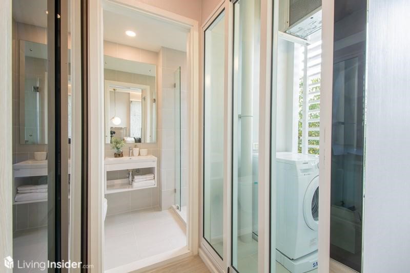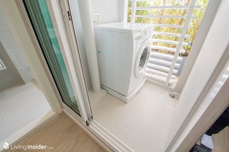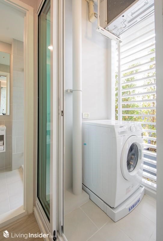 ตรงข้ามเป็นระเบียงซักล้าง สามารถวางเครื่องซักผ้า เก็บของ ตากผ้าได้ครับ