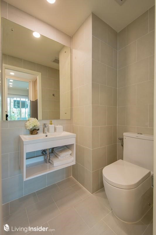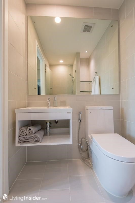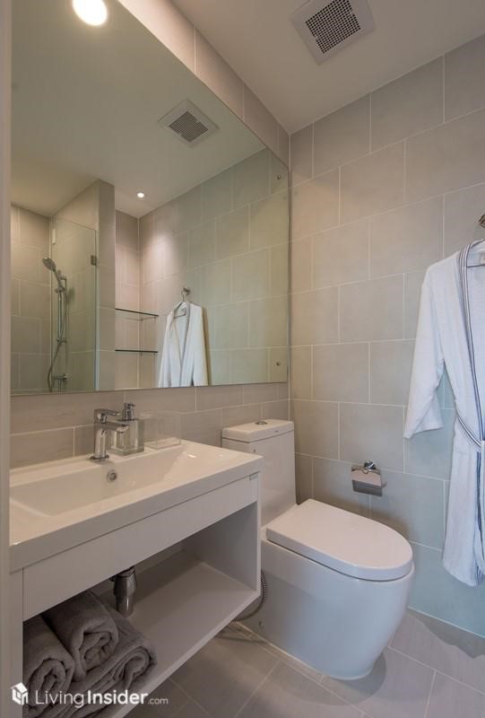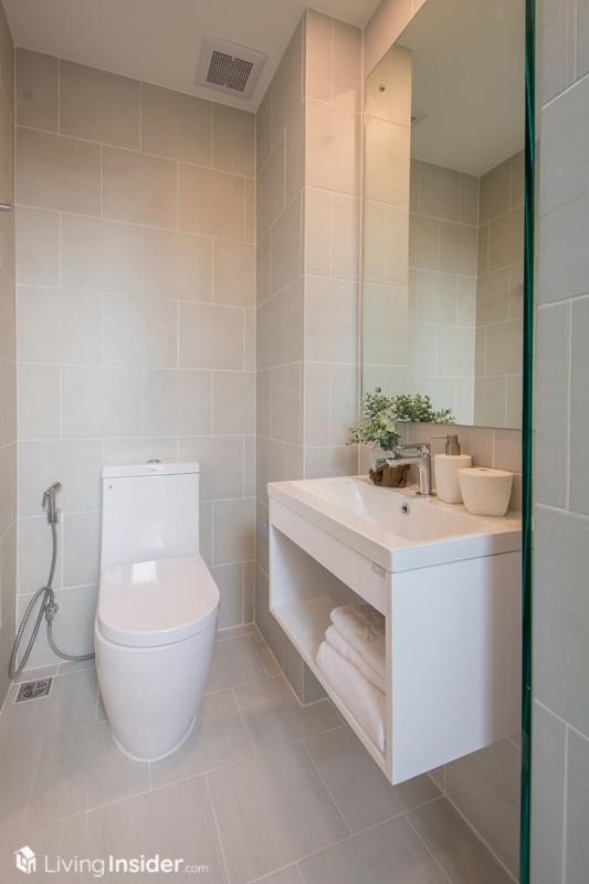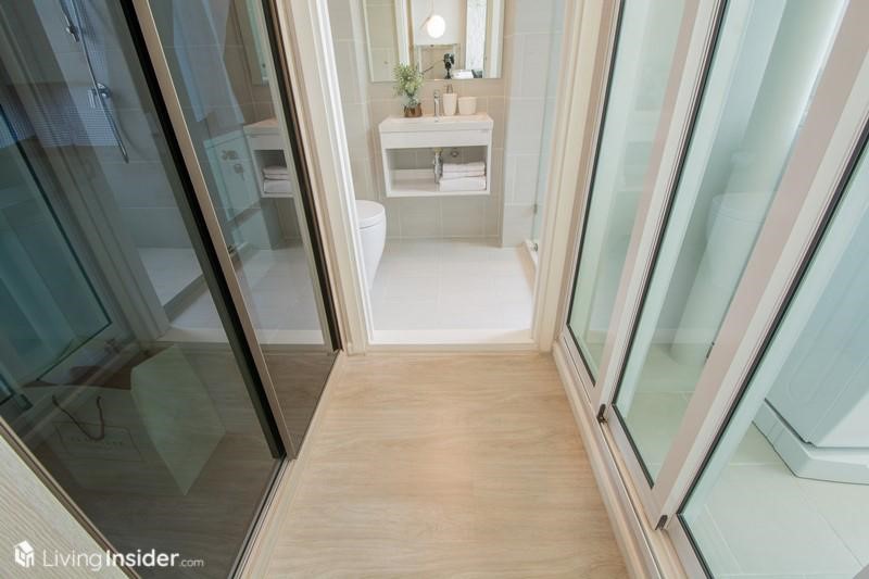 ด้านในคือห้องน้ำ สุขภัณฑ์ต่างๆ แบบเดียวกับยูนิต 1-Bedroom, Studio ครับ