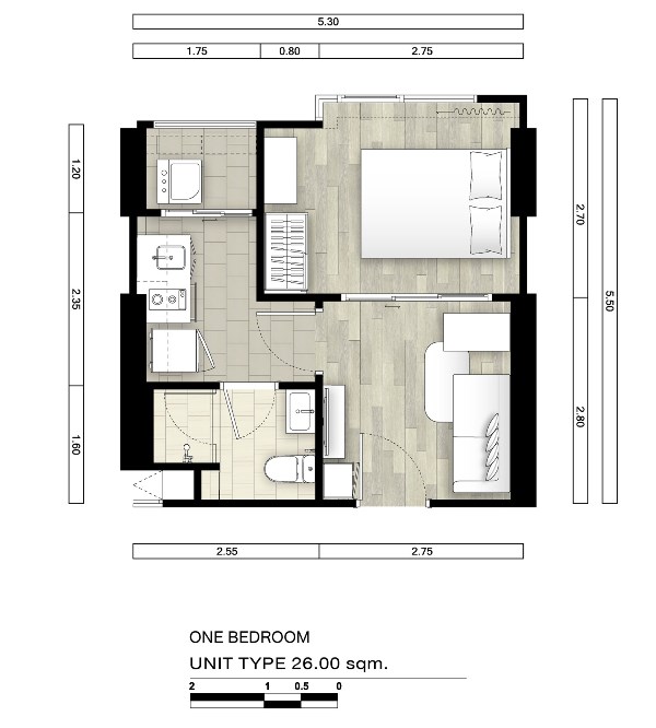 ยูนิต 1-Bedroom มาตรฐาน เหมาะกับคนชอบ Layout เป็นสัดส่วนชัดเจน แบ่งห้องนั่งเล่น ห้องนอน ห้องน้ำ พร้อมครัวปิด ลงตัวมากครับ อาศัย 1-2 คนสบายๆ