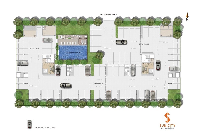 ส่วนกลางของ SUN CITY เป็นอีกหนึ่งอย่างที่ผมชอบ แม้ไม่ได้มีทุกอย่าง แต่มีทุกอย่างที่ได้ใช้จริงในชีวิตประจำวัน คัดสรรมาเพื่อให้ตอบโจทย์การใช้ชีวิตได้อย่างมีคุณภาพ เรียกได้ว่า “ไม่ต้องมีทุกอย่าง แต่ต้องมีทุกอย่างได้ใช้ และของที่มีต้องมีคุณภาพ” ที่จอดรถในร่ม ถนน 6 เมตร สระว่ายน้ำพร้อมพื้นที่สีเขียว และฟิตเนสติดสระ