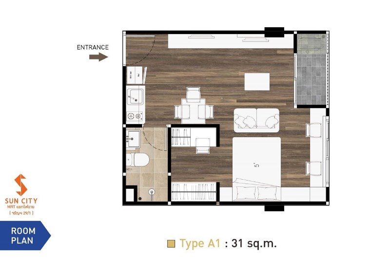 แปลนห้องแบบ A1 ขนาด 31 ตารางเมตร