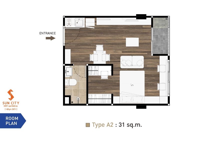 แปลนห้องแบบ A2 ขนาด 31 ตารางเมตร