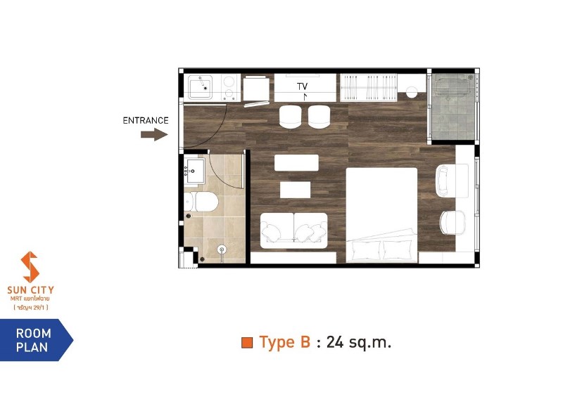 แปลนห้องแบบ B ขนาด 24 ตารางเมตร