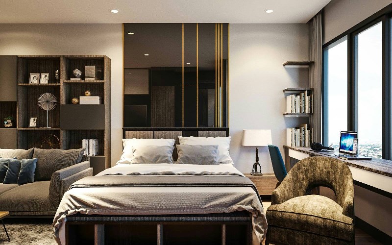เพิ่มเติมด้วยกระจกบริเวณหัวนอน ห้องนั่งเล่น และตู้เสื้อผ้า เราจะสามารถอยู่อาศัยได้ทั้งวันแบบไม่รู้สึกอึดอัดเลย ความรู้สึกเสมือนอยู่ห้อง 40 ตารางเมตรด้วยราคาห้อง 24 ตารางเมตรด้วยการออกแบบที่เหมาะสม และใช้พื้นที่ทุกตารางเมตรอย่างมีประสิทธิภาพ