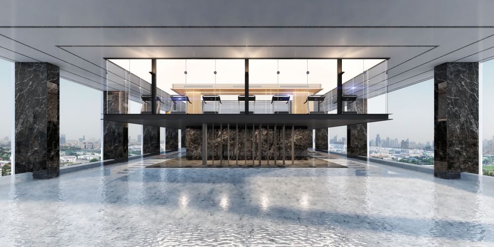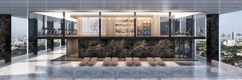 ส่วนชั้นลอยเหนือสระว่ายน้ำเป็น Horizontal Gym พื้นที่ออกกาลังกาย ออกแบบให้เหมือนลอยอยู่กลางอากาศและสามารถมองวิวเมืองได้360 องศา มีพื้นที่ประมาณ 200 ตร.ม