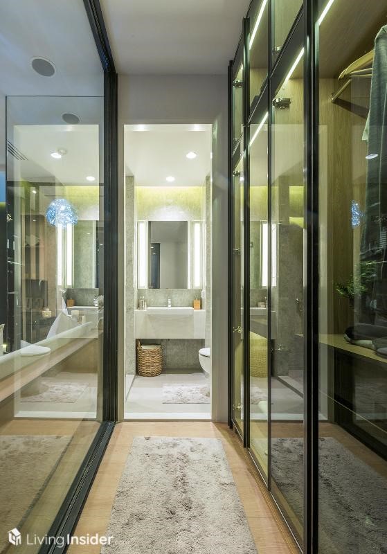 ทางเข้าห้องน้ำออกแบบเป็น ตู้เสื้อผ้า Twin Closet 2 ฝั่ง ใส่เสื้อผ้าได้เยอะจุใจเลยครับ