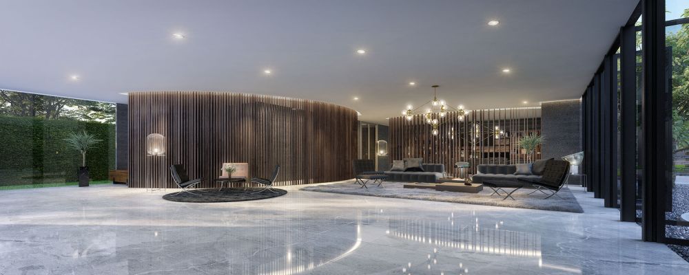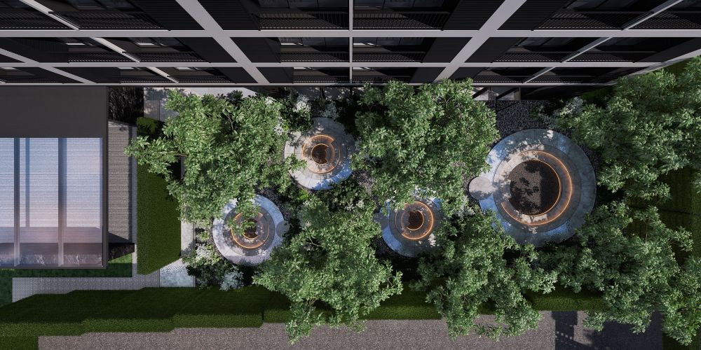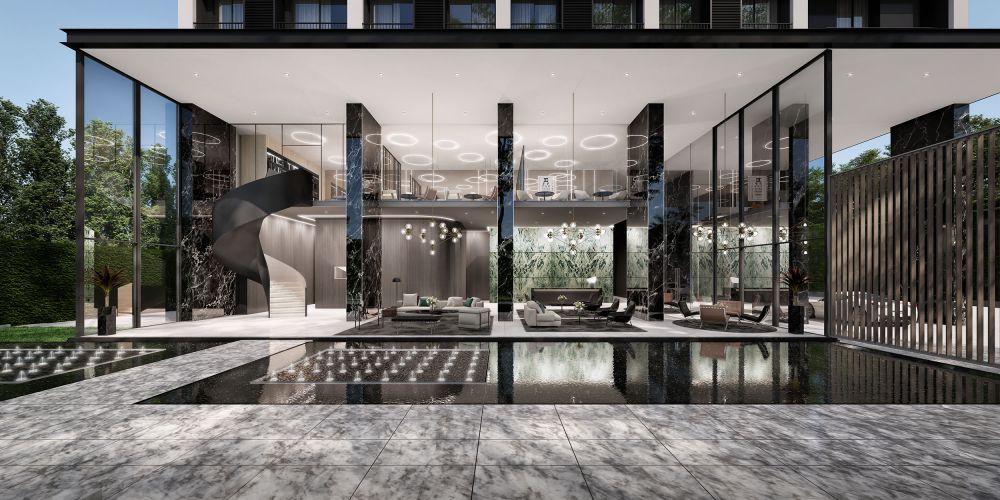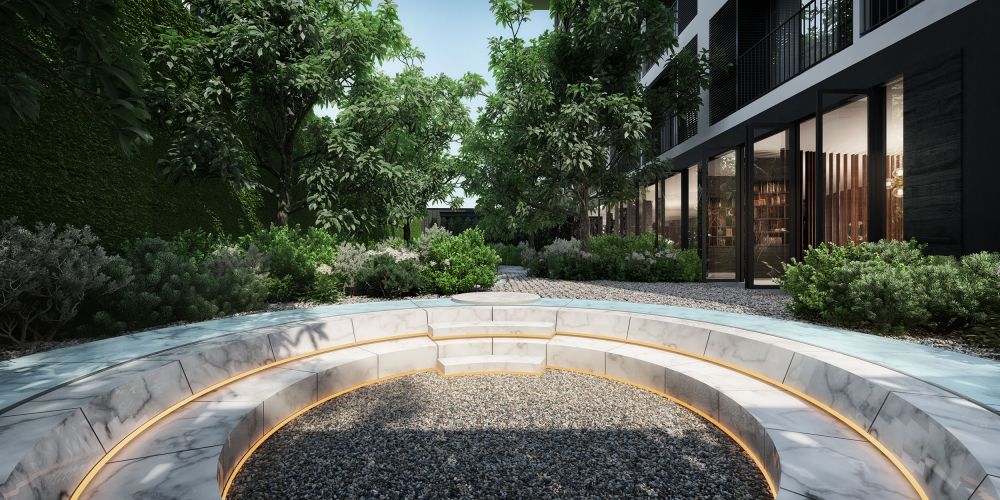 ซึ่ง Lobby จะเชื่อมต่อกับ Around Garden ดีไซน์สวนพักผ่อนแบบเท่ๆ โดยมีลักษณะคล้าย Sunken Seat ผสมผสานความเย็นของน้ำเหนือพนักผิงได้อย่างลงตัว