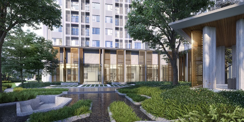 เมื่อเข้ามาบริเวณโครงการจะเจอกับ Drop Off Circle ที่มีไว้สำหรับรับส่งคน ก่อนที่จะเข้าไปบริเวณลาดจอดรถด้านใน ซึ่งแค่จุด Drop off ยังออกแบบได้อลังการขนาดนี้ ส่วนอื่นจะสุดขนาดไหน