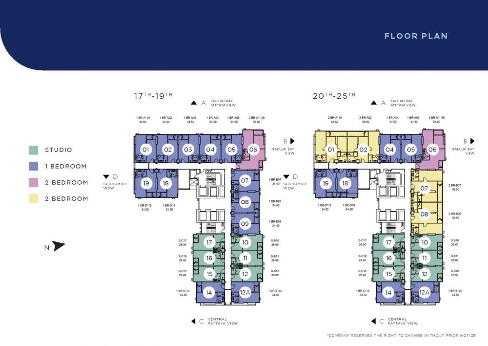 เรื่องแปลนห้องมีครบทั้ง 4 ทิศ ทิศ A ตะวันตก เห็นวิวอ่าวพัทยา ทิศ B เหนือ เห็นวิวแหลมฉบัง ทิศ C ใต้ เห็นวิวพัทยาใต้ และทิศ D ตะวันออก วิวภูเขา ส่วนห้องก็มีให้เลือกถึง 4 แบบ ได้แก่