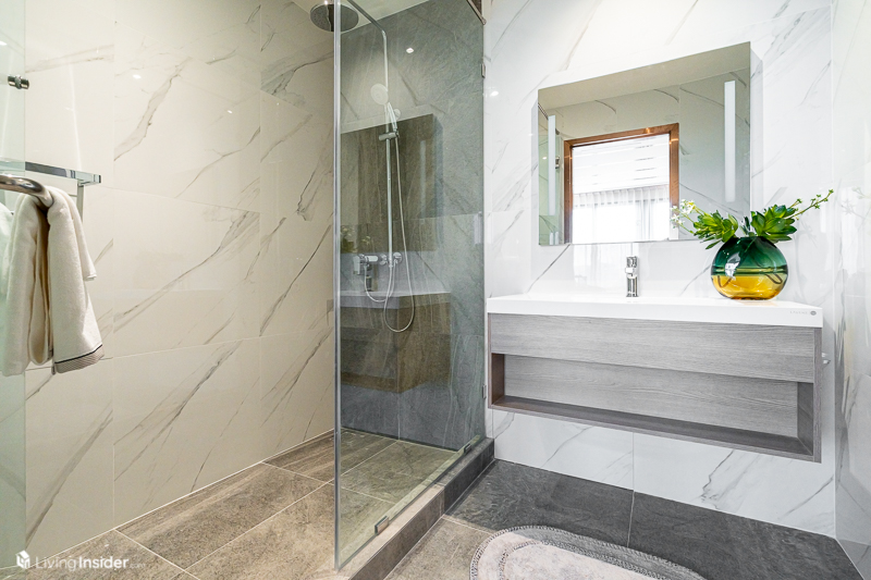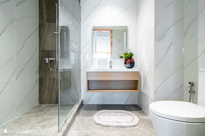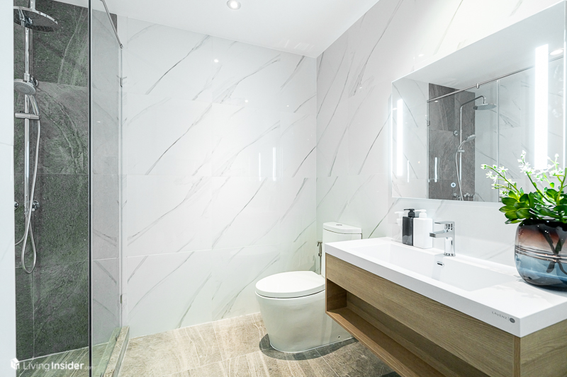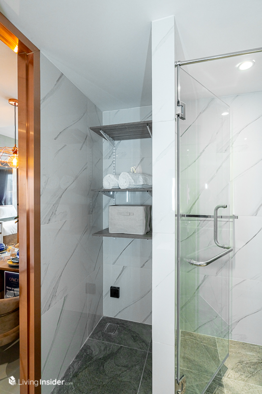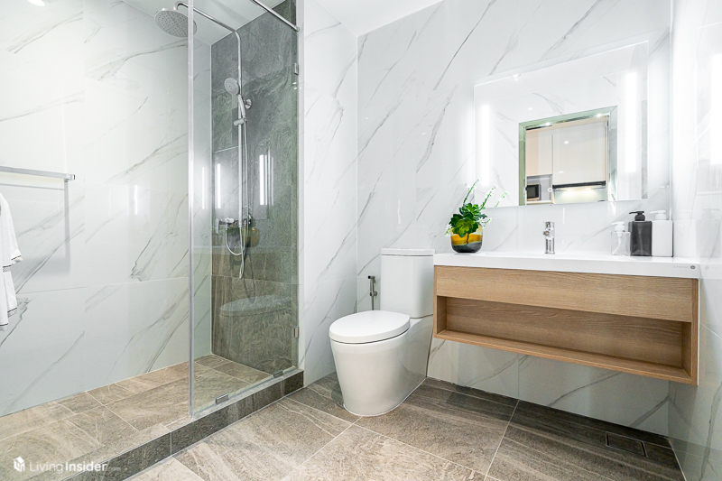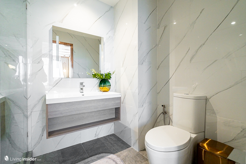 ห้องน้ำ จะอยู่ฝั่งเดียวกับโต๊ะกินข้าว ซึ่งจะแปลกกว่าห้องอื่นตรงที่เครื่องซักผ้าอยู่ในห้องนี้ด้วย ทำให้ซักล้างได้สะดวกไม่ยุ่งยาก มีชั้นวางของง่ายต่อการจัดเก็บ