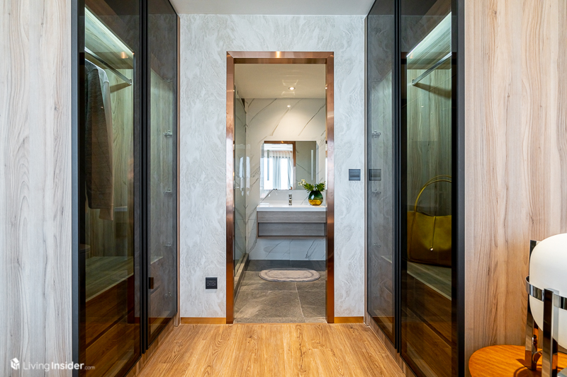 อีกฝั่งเป็นตู้เสื้อผ้าประกบซ้ายขวา สามารถใส่เสื้อผ้าได้เยอะ ก่อนจะเดินเลยไปเข้าสู่ ห้องน้ำ ที่ยังคงคอนเซ็ปต์เดิม คือกว้างขวางสุดๆ สุขภัณฑ์มีครบพร้อมใช้งาน