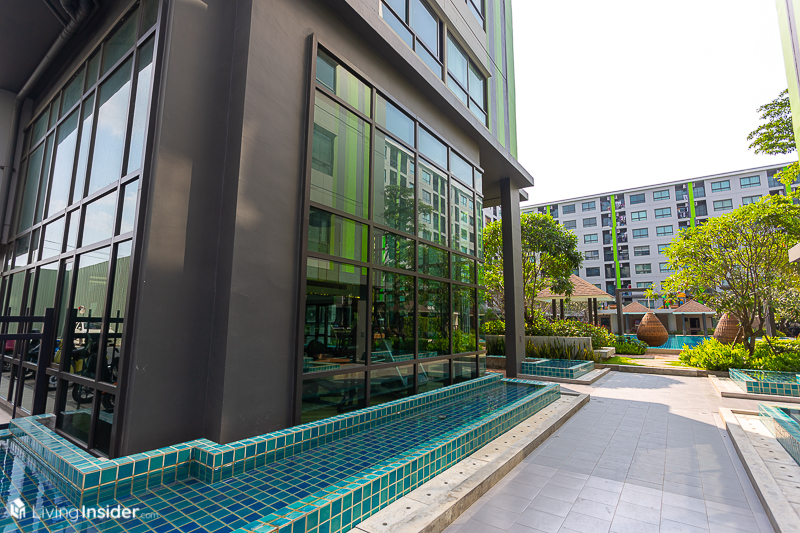 บรรยากาศจริง การวาง Layout อาคาร ส่วนกลางลงตัวมาก เหมือนรีสอร์ตขนาดใหญ่เลยพื้นที่สีเขียว มุมพักผ่อนกระจายตัวรอบสระไม่กระจุกตัว ณ ส่วนใดส่วนหนึ่ง เห็นว่ามีลาน BBQ ด้วยนะครับ